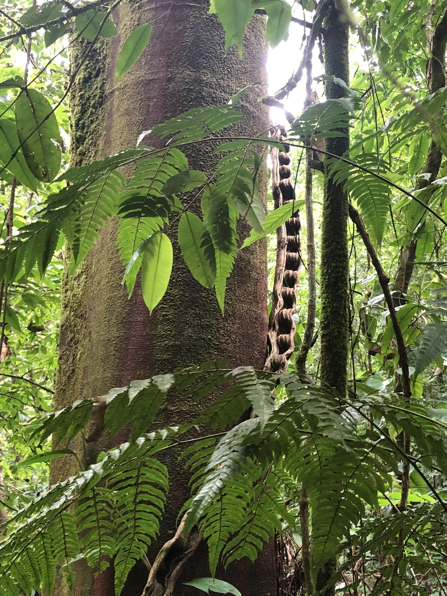 Üks äge liaan - monkey ladder (Entada gigas ehk eesti keeles süllane hiiduba). Näeb välja küll nagu väike redel, millest ahvid üles ronida saaksid. Neil hästi ägedad seemned, mis võivad ookeanihoovustega tuhandeid kilomeetreid läbida, kui taim rannikul kasvab.